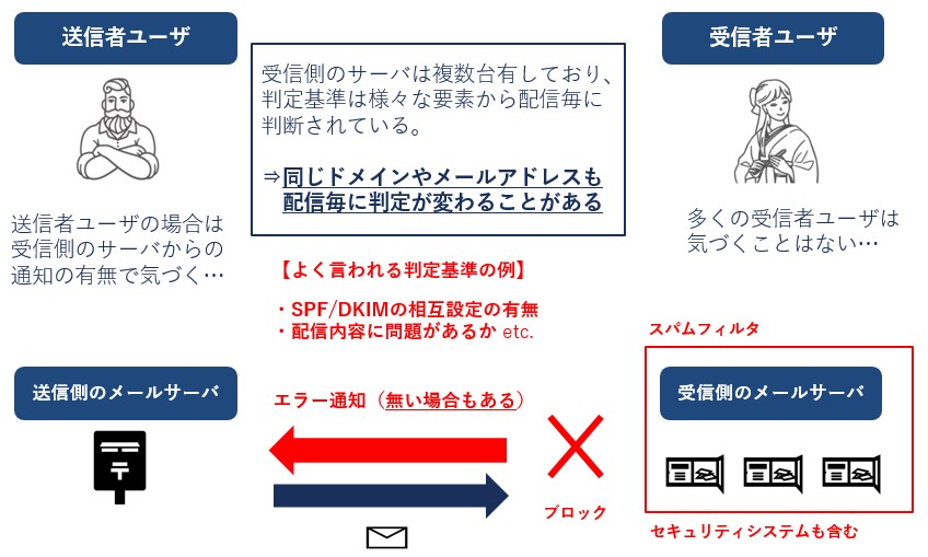 迷惑メールフィルタの判定基準は受信側のサーバやセキュリティシステムにより異なり、
