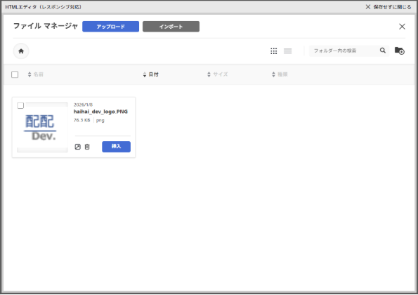 ▼レスポンシブエディタの画像管理画面