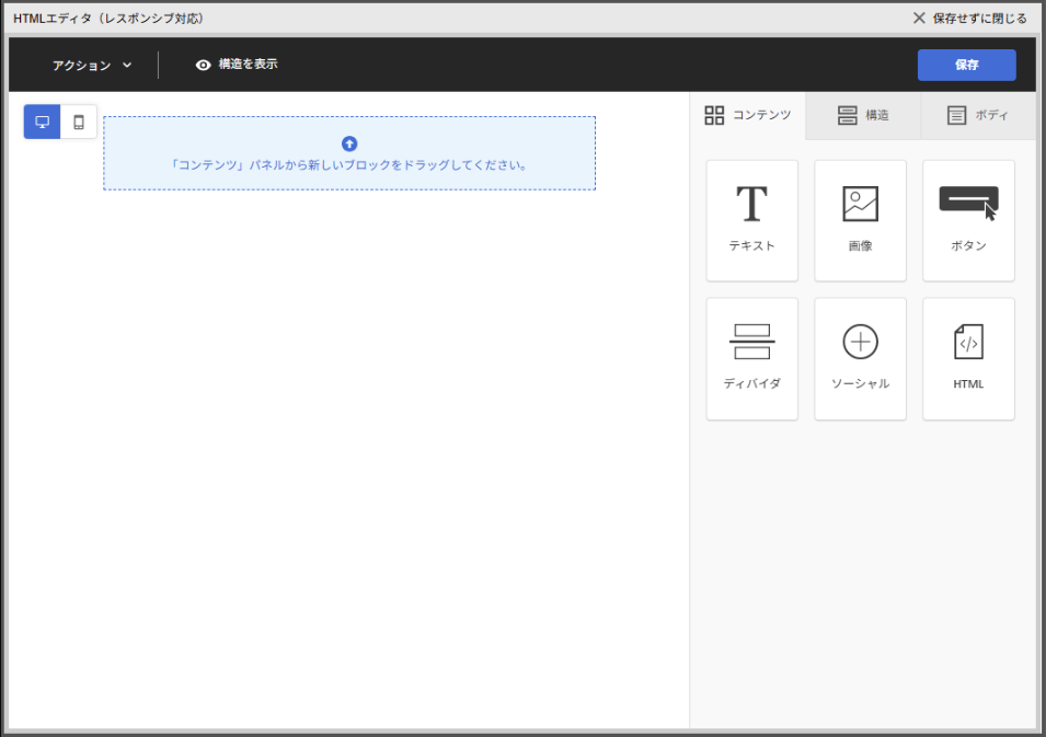 レスポンシブエディタで作成されたメールは基本的には編集することはできません。